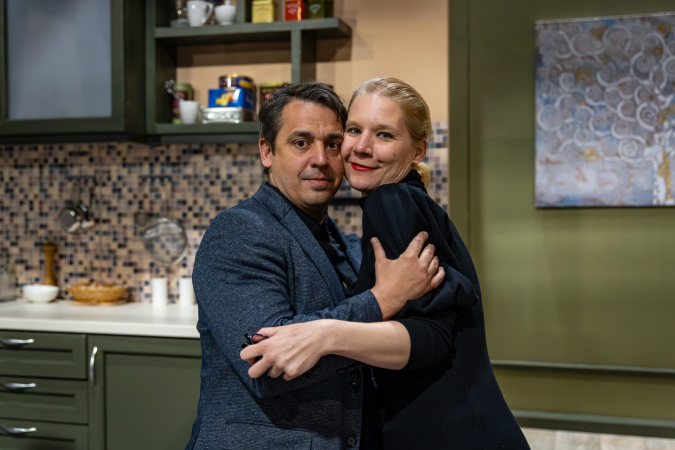 Az előadásban Annát, a pszichológust Hajdú Melinda, férjét, a plasztikai sebész Palit Orth Péter alakítja. A baráti társaság tagjai hozzájuk érkeznek vacsoravendégségbe. Márton, a sztárügyvéd szerepében Adorjáni Bálint és Kovács Lehel váltják egymást, a szintén ügyvéd feleség Flórát Märcz Fruzsina játssza. Pankát, az állatorvost Venczli Zóra, Ricsit, a taxisofőrt Lakatos Máté, míg Eriket, a tanárt Konfár Erik formálja meg. Anna és Pál lányát, Zsófit a Nemzeti Dobogó növendékei, Matuska Villő és Jekkel Anna játsszák felváltva.