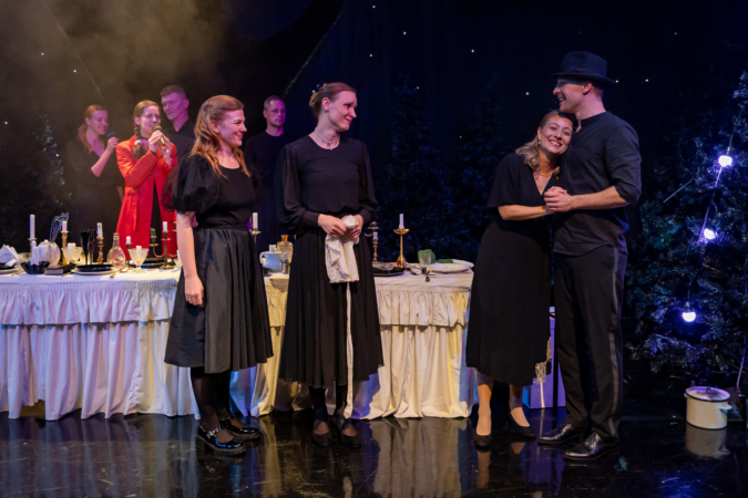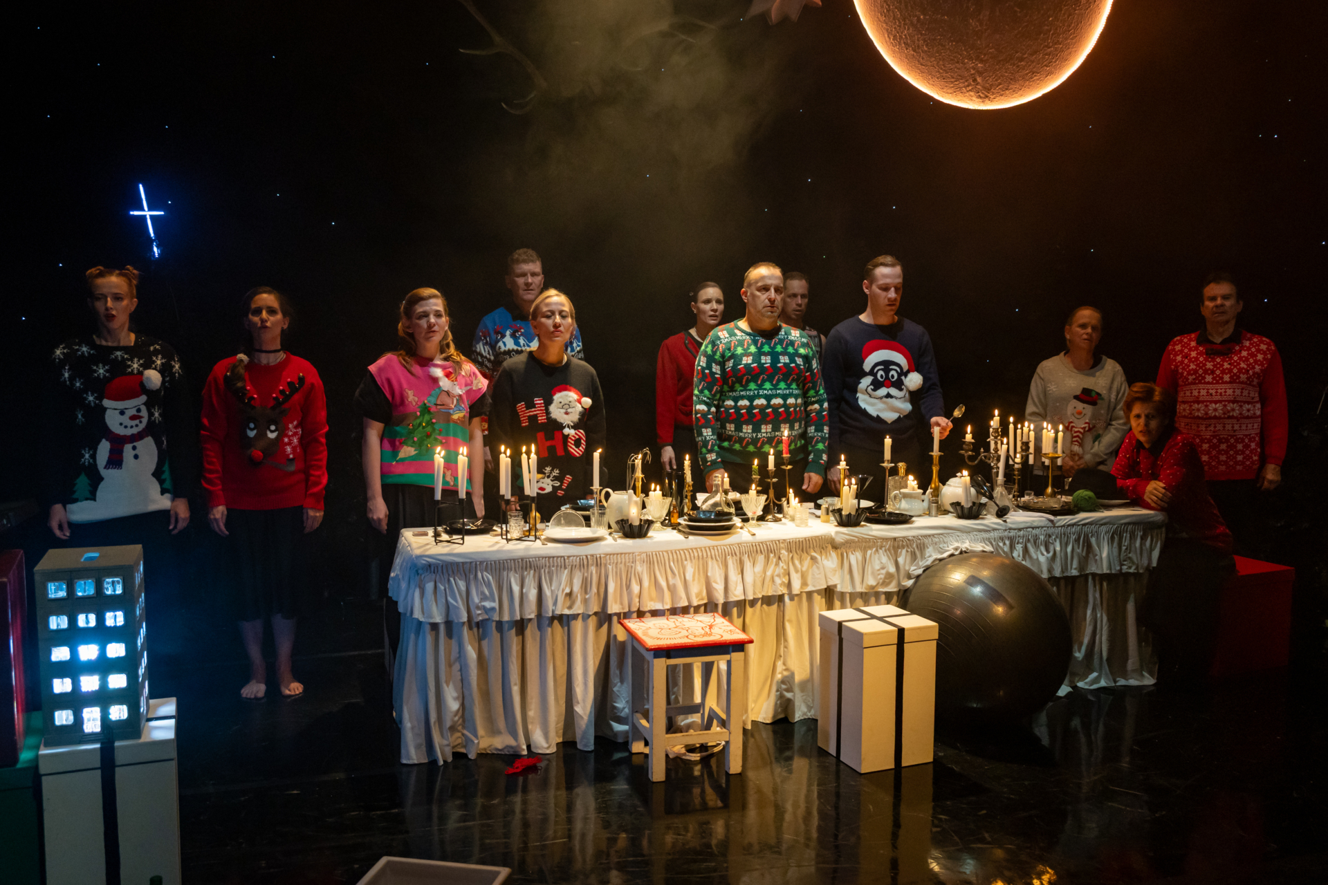 Szabó Borbála legújabb drámája érzékenyen és játékosan vezet végig bennünket egy évszázadon, miközben a háttérben a 20. századi magyar történelem eseményei zúgnak, suttognak, néha pedig üvöltenek. A darab egyetlen család nappalijában játszódik, ahol száz év karácsonyai elevenednek meg, újra és újra felépítve és lerombolva mindazt, amit a szeretet, az emlékezés és a túlélés jelenthet. Háborúk, forradalmak, rendszerváltások, diktatúrák és reményteljes újrakezdések fonódnak össze egy nő életének stációival, miközben az ünnep állandósága kapaszkodót kínál az idő sodrásában. A Száz karácsony nemcsak történelmi panoráma, hanem személyes utazás is: a család, az emlékezet és az ünnep jelentéséről — és arról, hogyan éljük túl, amit túl kell, és hogyan őrizzük meg azt, amit muszáj. Egy ünnep. Egy élet. Egy évszázad. Egy különleges színházi este, ahol a múlt nem múlik el, csak történetté válik. A Száz karácsony ősbemutatóján a történelem a karácsonyi asztal mellé ül.