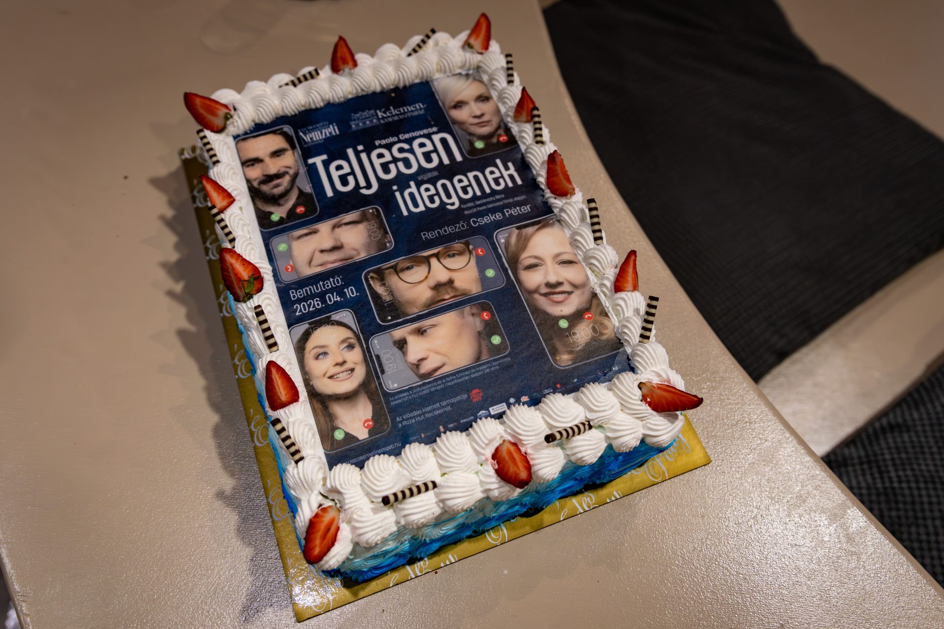 Mi történne, ha egy vacsoraesten minden jelenlévőnek ki kellene tennie a telefonját az asztalra, és minden üzenetet, hívást, titkot meg kellene osztania a többiekkel? Paolo Genovese zseniális alapötlete ezen az egyszerű kérdésen keresztül vezet be minket egy olyan világba, ahol a barátokból idegenek, a hazugságokból igazságok, a poénokból pedig kínos csendek lesznek. A film óriási nemzetközi sikert aratott: számos országban újraforgatták, köztük hazánkban is, BÚÉK címmel. Ezután meghódította a színpadokat is: a Komáromi Jókai Színház kérte először a jogot arra, hogy színpadra vihesse a Teljesen idegeneket. Azóta már több teátrum is műsorára tűzte, most pedig végre Kecskemétre is megérkezett a darab.