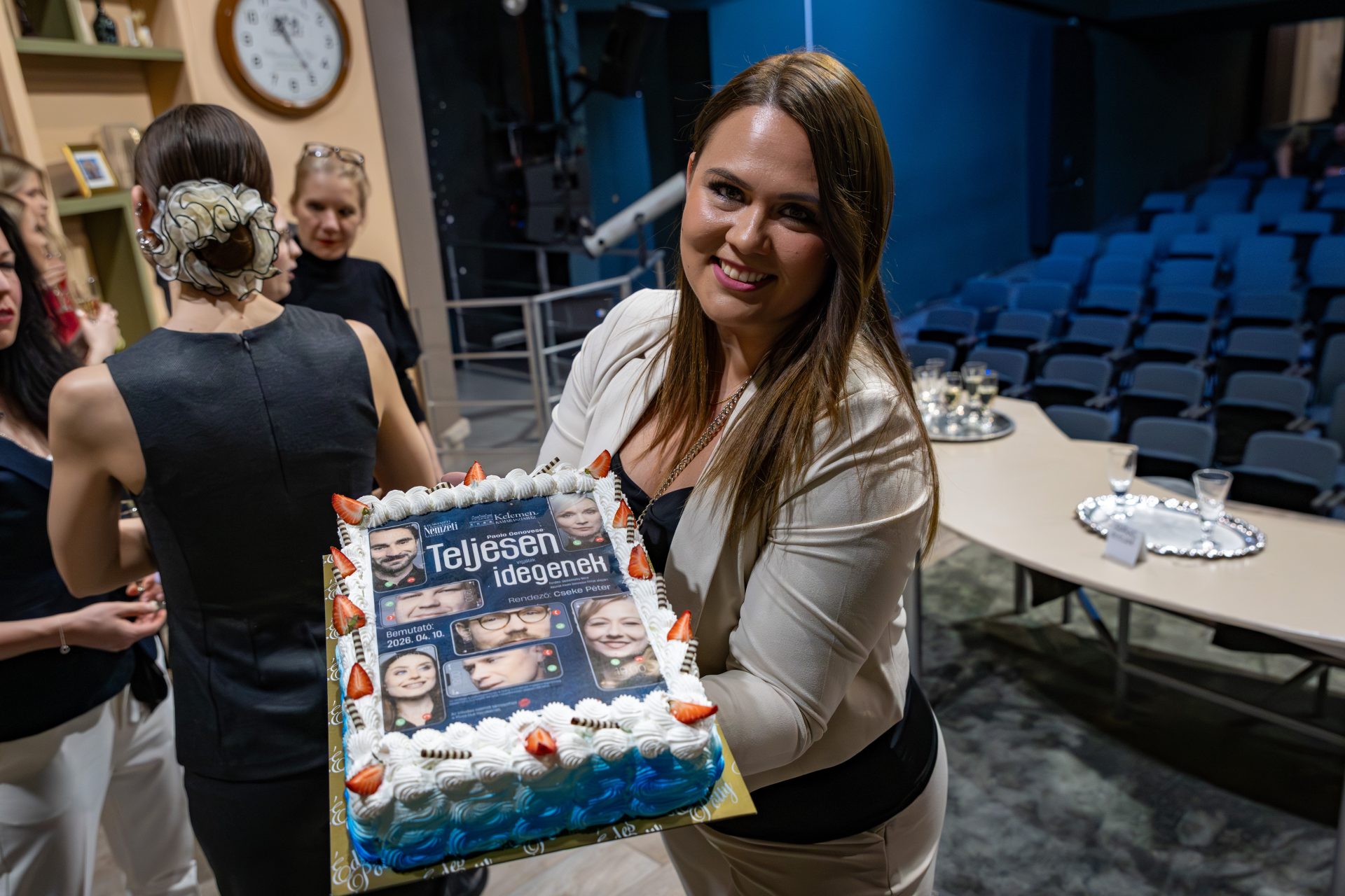 A premier utáni ünnepségen Cseke Péter köszönet mondott az előadás létrehozásában közreműködő csapatnak, elsőként a színművészeknek. „Köszönöm nektek ezt az elmúlt hat hetet. Nagyon sok szép élményt viszek magammal ebből a próbafolyamatból. Csodálatosan játszotok, ugyanakkor nagyon fegyelmezettek és pontosak vagytok, ami nagyon lényeges ebben a darabban. Az egyik próbán egyszer azt mondtam nektek, hogy akkor lesz ez a darab igazán jó, hogyha közösen tudtok játszani. Ezt gyönyörűen megvalósítottátok. Nagyon köszönöm a díszlettervezőnek, Kovács Yvette Alidának, a jelmeztervezőnek Gyarmati Dórának, a darab dramaturgjának, Szabó Borbálának, Kovács Olga rendezőasszisztensek, valamint a műszaknak, a világosítóknak, a hangosítóknak, a díszítőknek és a kelléktár munkatársainak.”