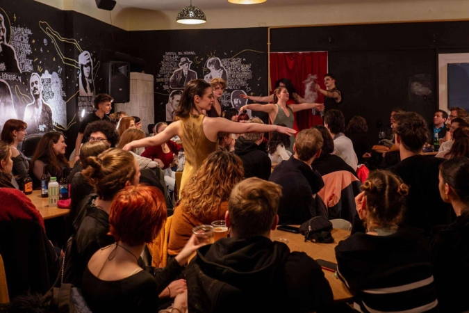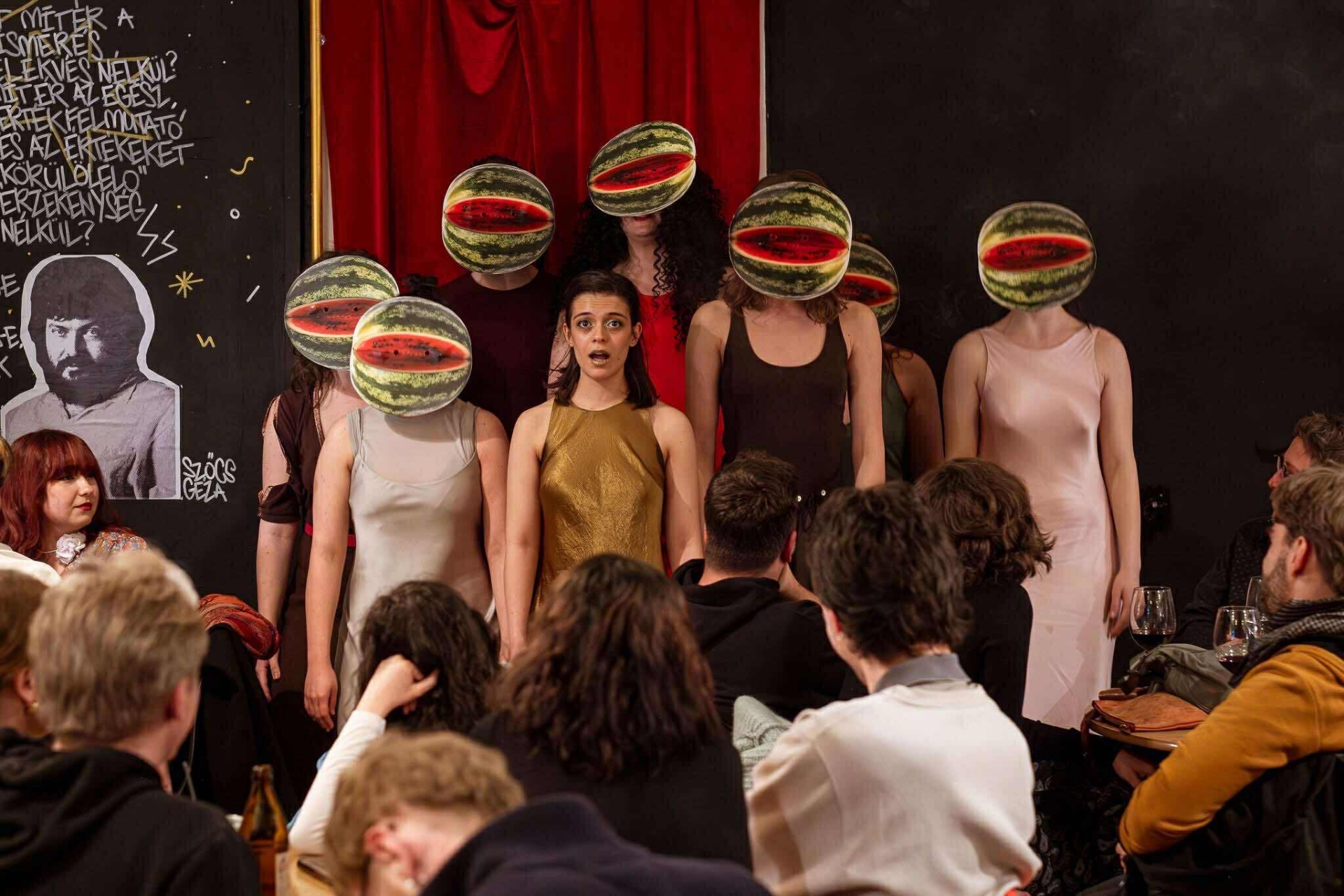 A Magyar Színházi Intézet színművész és teatrológia szakos hallgatóinak előadásában nyolc női alak helyzete tárul a nézők elé. Nyolc különböző történettel, etűddel igyekszik az előadás határokat elmosni, amihez Antonin Artaud Színház és pestis című szövege adja a gerincet, mert az alkotók is úgy vallják, hogy a színház – akárcsak a pestis – felfedi a rejtett valóságot. Ez lehet a pusztulás… de talán a megtisztulás kezdete is.