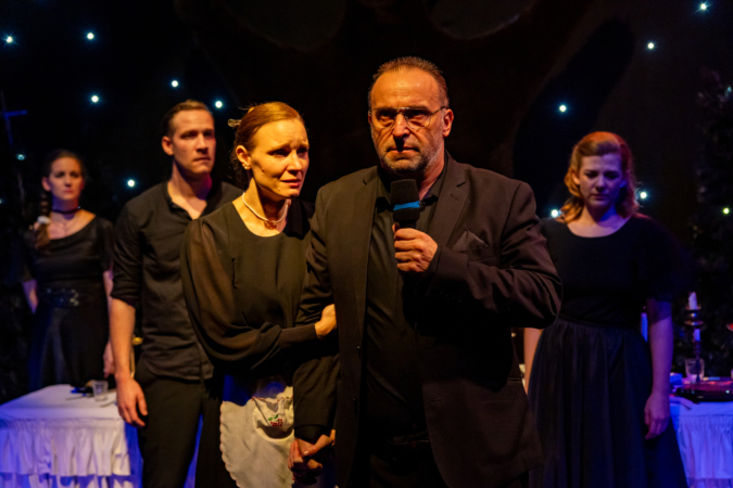 Szabó Borbála legújabb drámája érzékenyen és játékosan vezet végig bennünket egy évszázadon, miközben a háttérben a 20. századi magyar történelem eseményei zúgnak, suttognak, néha pedig üvöltenek. A darab egyetlen család nappalijában játszódik, ahol száz év karácsonyai elevenednek meg, újra és újra felépítve és lerombolva mindazt, amit a szeretet, az emlékezés és a túlélés jelenthet. Háborúk, forradalmak, rendszerváltások, diktatúrák és reményteljes újrakezdések fonódnak össze egy nő életének stációival, miközben az ünnep állandósága kapaszkodót kínál az idő sodrásában. A Száz karácsony nemcsak történelmi panoráma, hanem személyes utazás is: a család, az emlékezet és az ünnep jelentéséről — és arról, hogyan éljük túl, amit túl kell, és hogyan őrizzük meg azt, amit muszáj. Egy ünnep. Egy élet. Egy évszázad. Egy különleges színházi este, ahol a múlt nem múlik el, csak történetté válik. A Száz karácsony ősbemutatóján a történelem a karácsonyi asztal mellé ül.